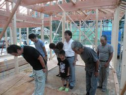 まちに待った上棟日です。晴天にも恵まれ、清清しい上棟日を迎えられました。