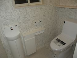トイレ横に収納を設置しています。たくさんの日用品などを収納することできますので大変便利です。